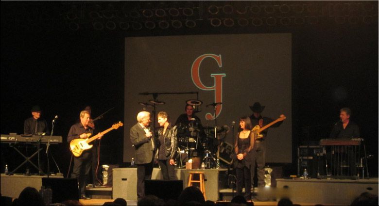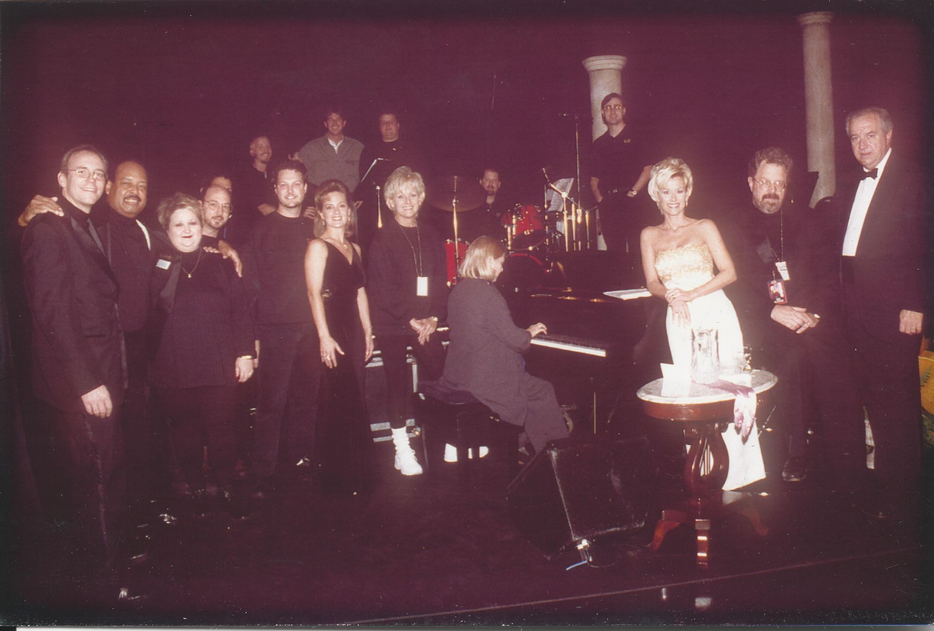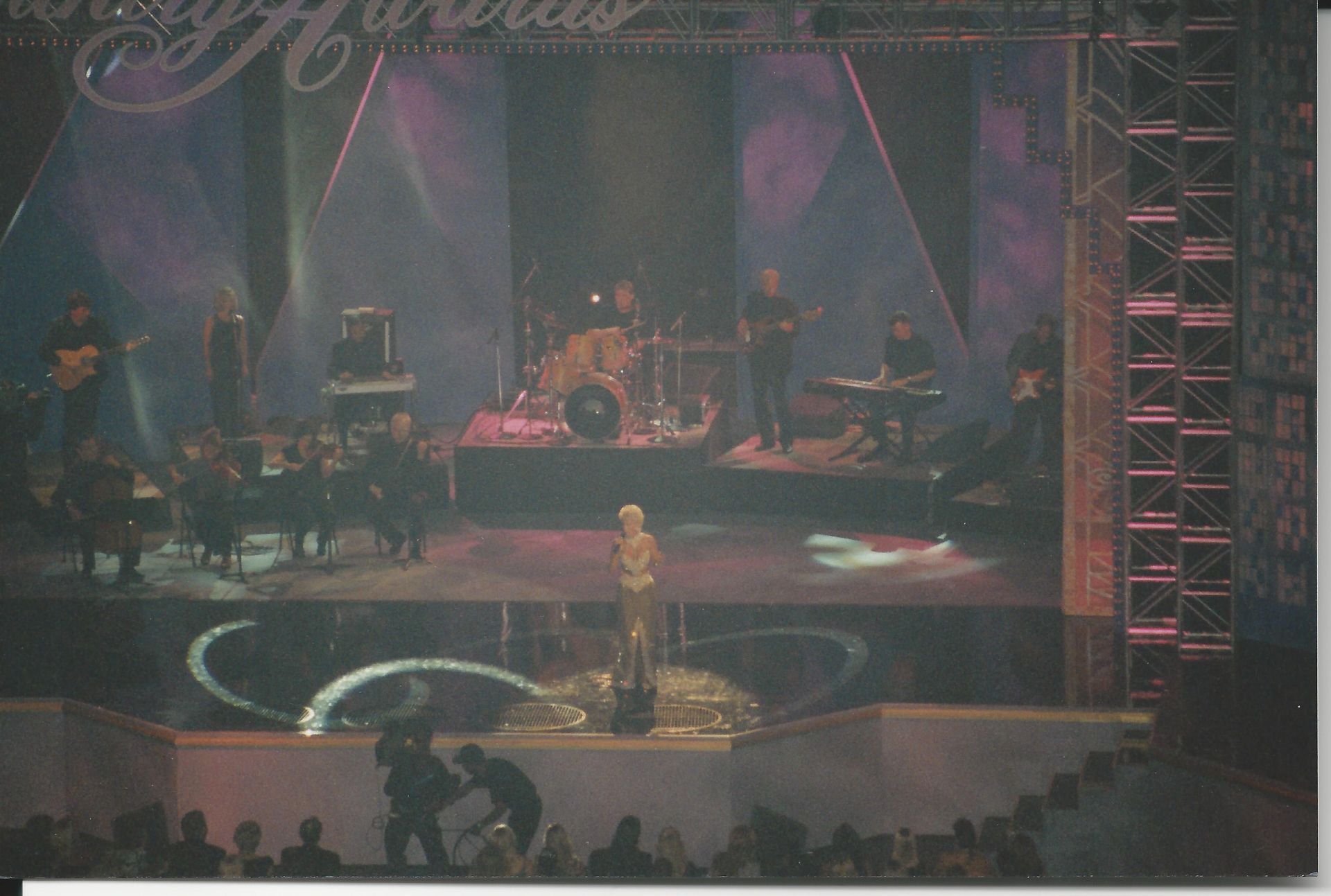 I believe this picture was taken in 1997. Lorrie had replaced her band after the Kraft tour in 1996 with the exception of myself and drummer Howard Mayberry. Symphony players were used along with her new band for her performance on the televised awards show. I'm in the back to the left of her in this picture.