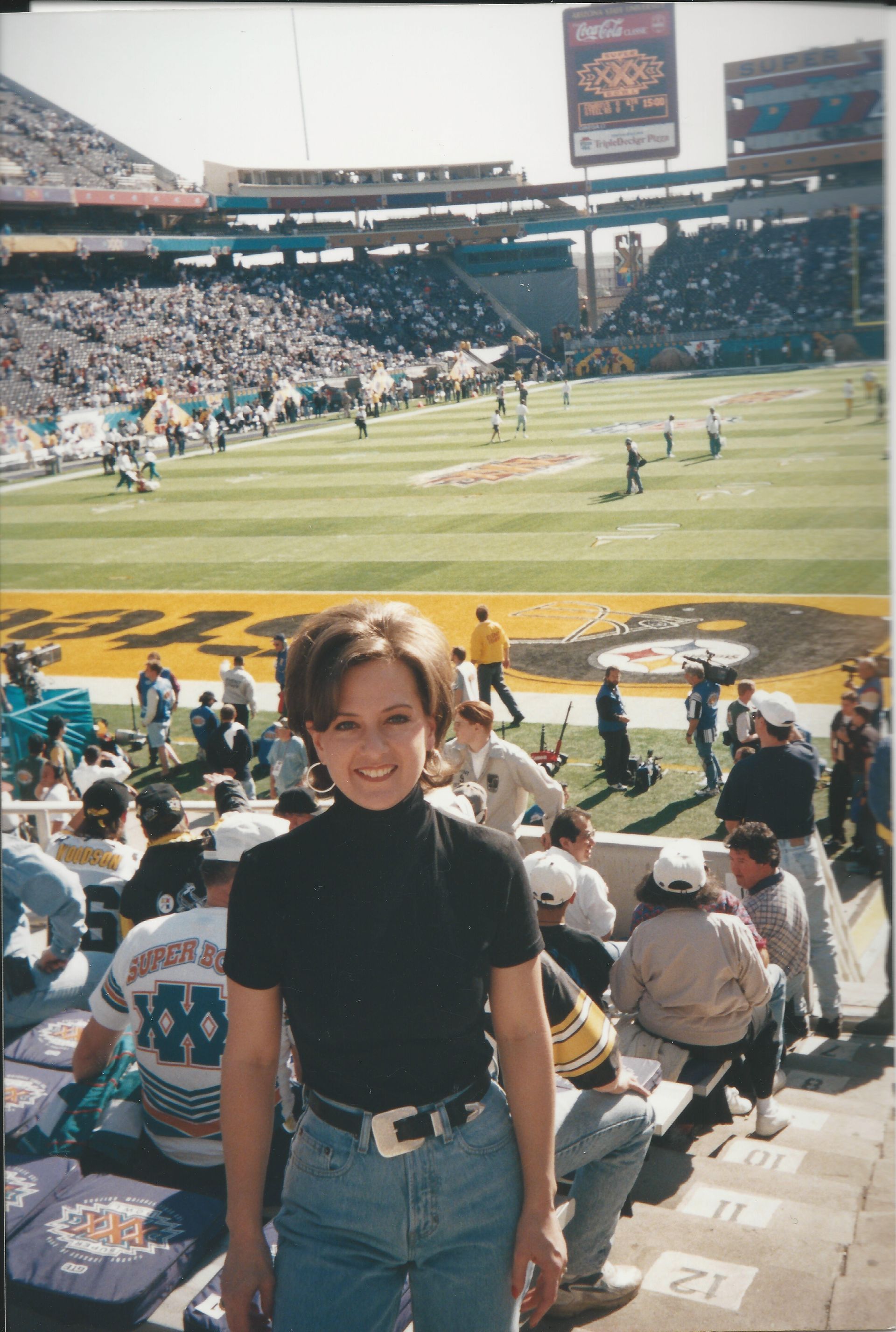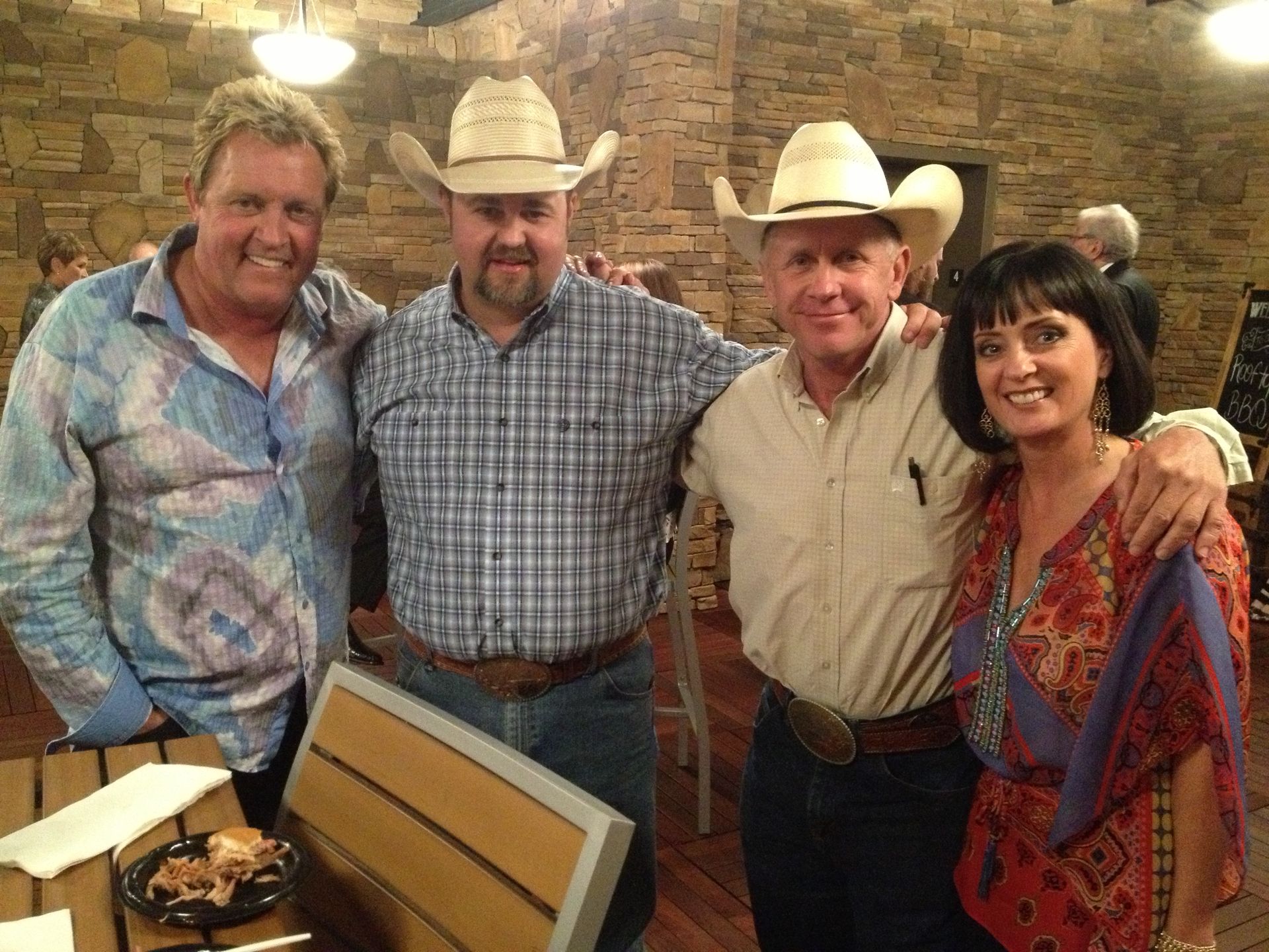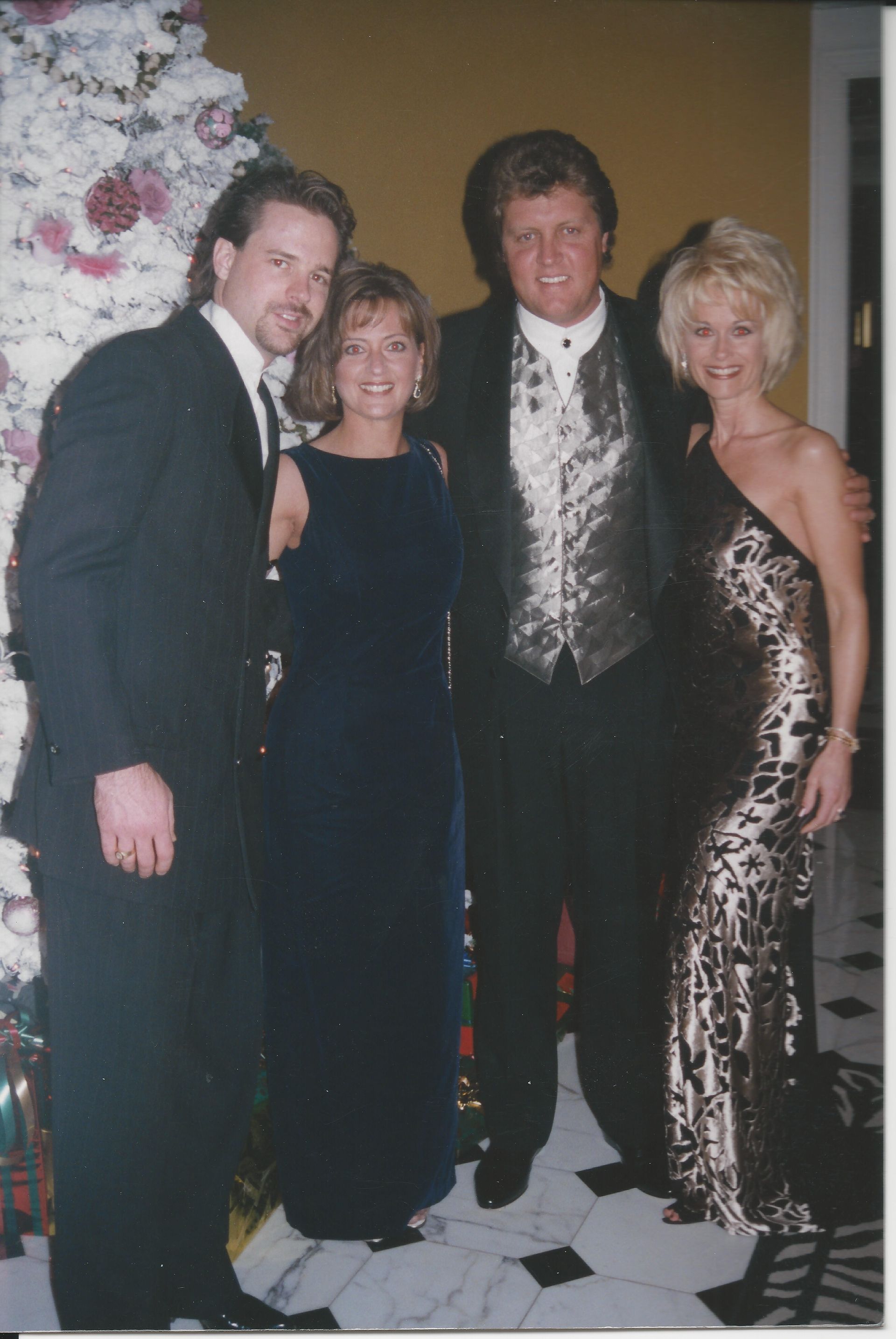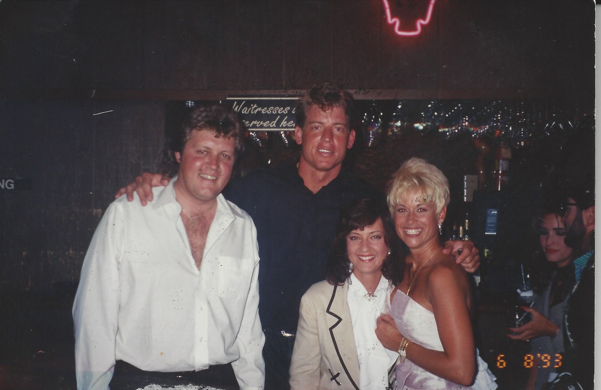 I started working for Lorrie Morgan as a background vocalist in 1993. Later that year she started dating Troy Aikman – Dallas Cowboy’s quarterback. Before starting with Lorrie I was a featured vocalist at The Stockyard’s Bullpen Lounge - the most famous country music club in Nashville at the time. I kept singing there after I started with Lorrie on nights that we weren’t touring. Troy had been coming in before he and Lorrie dated so I had seen him there before. He was good friends with the band members of the group Shenandoah. On this particular night Troy and Lorrie came in and caught me “moonlighting”. I had called my husband Lee (Buddy) to let him know that Troy and Lorrie were there and he came over so he could meet Troy. Notice Mike McGuire from Shenandoah to the right in the picture.