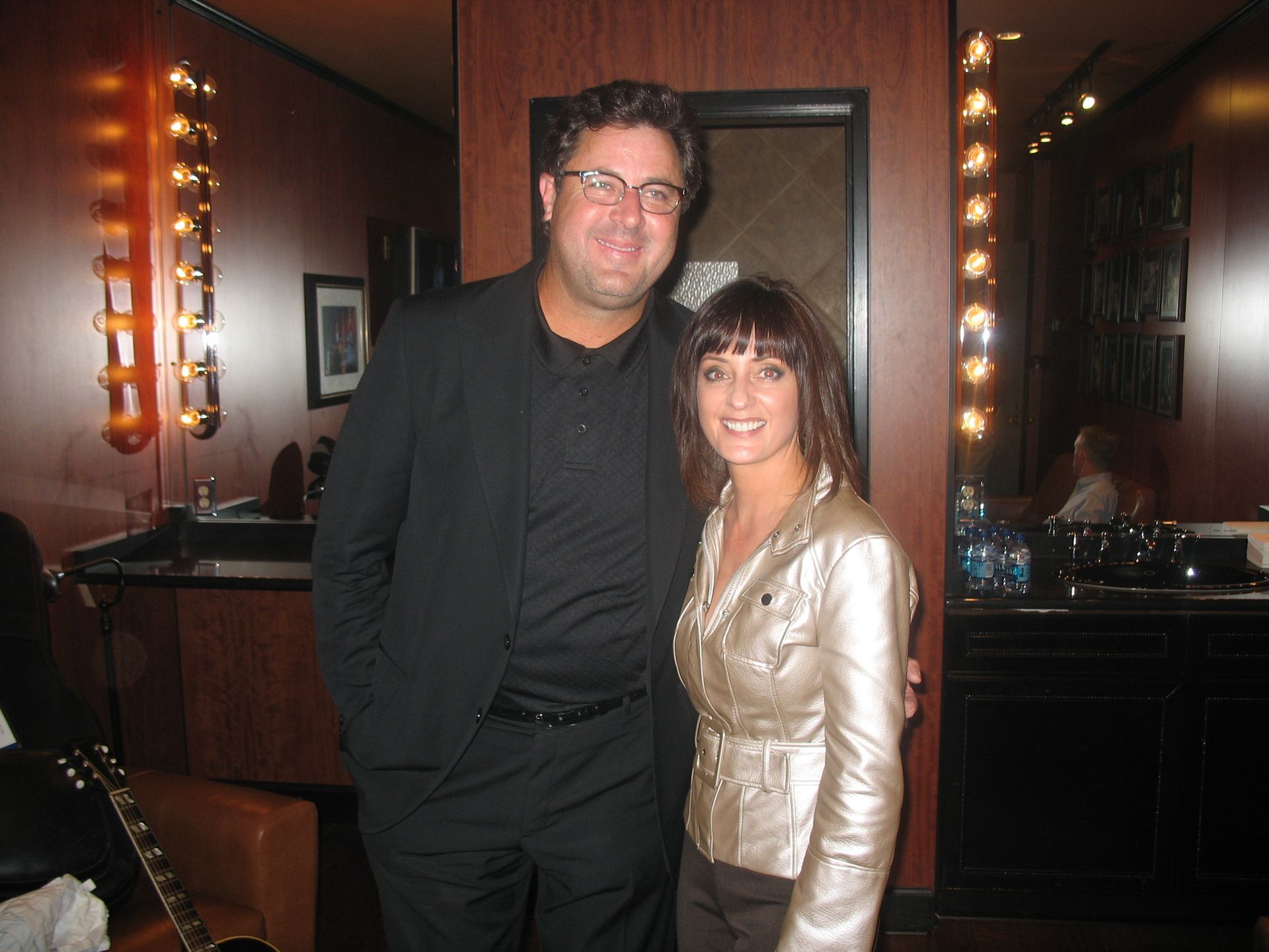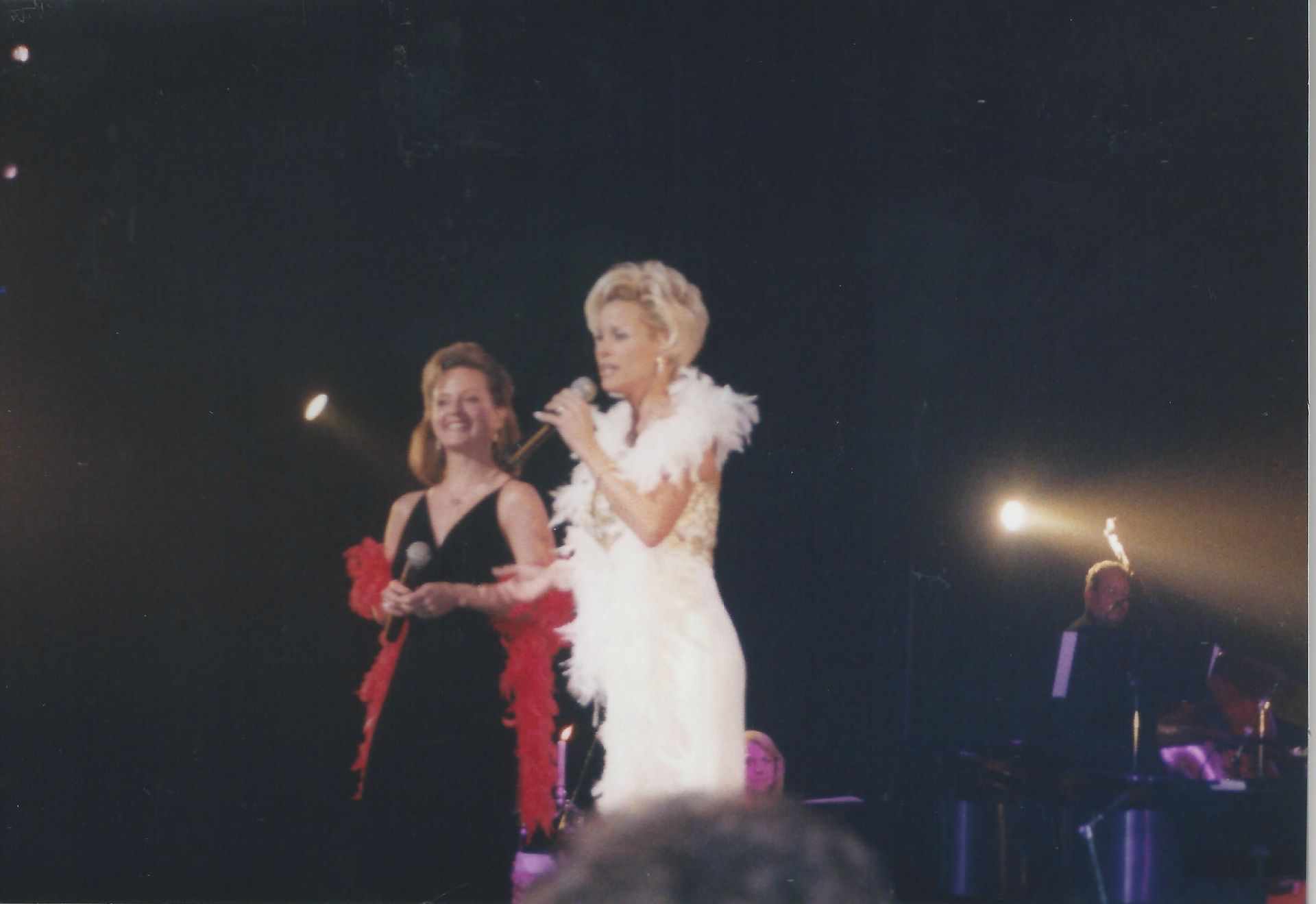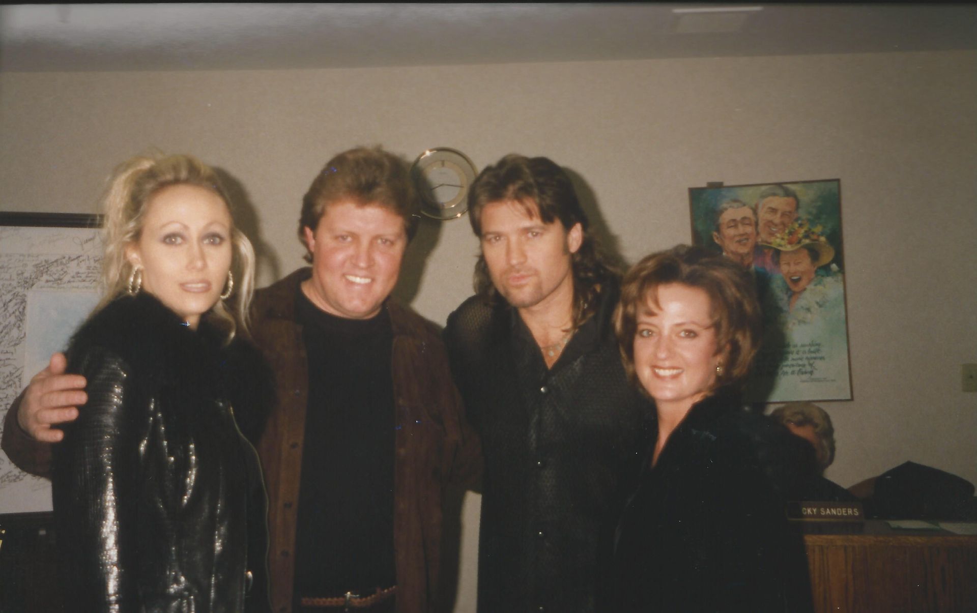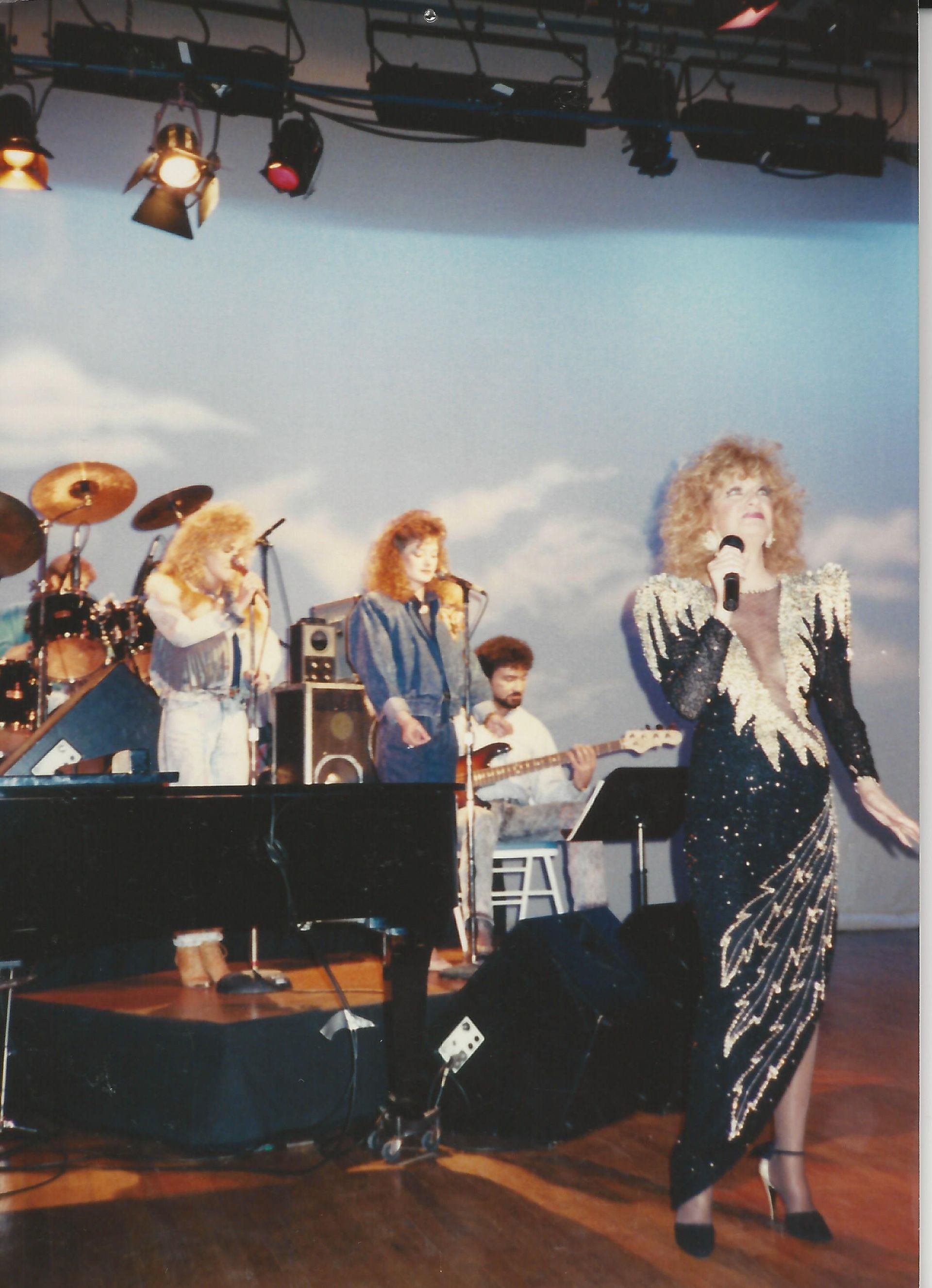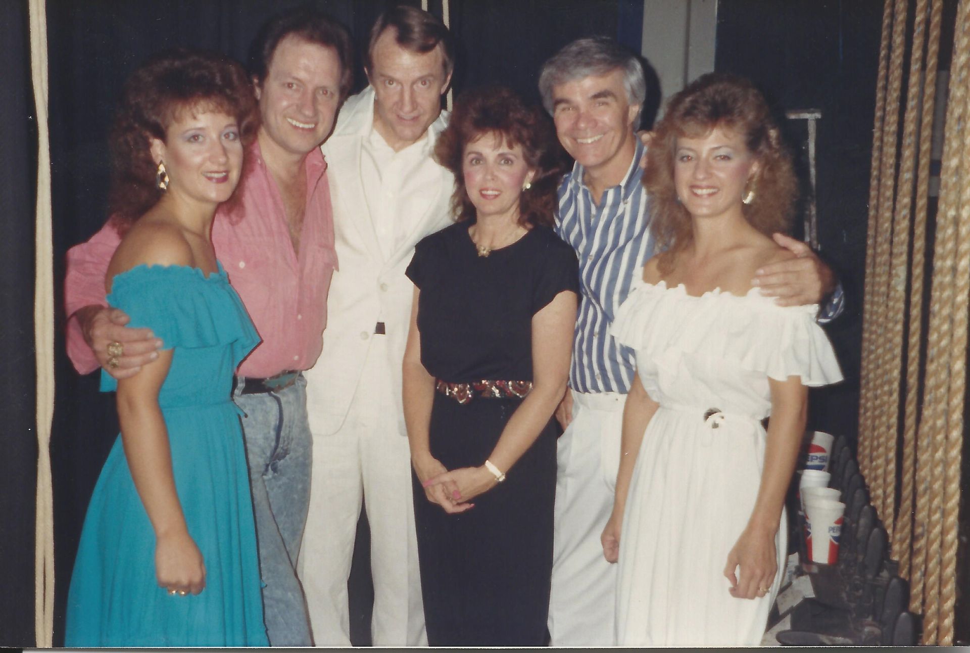 Prior to moving to Nashville in 1989, a friend of mine, Steve Swenson known in the Midwest for his band Cocktail Stevie and the Table Rockers (who I worked with briefly) told me that he was friends with Mickey Gilley’s bass player, Doug Driesel. Doug had told him Mickey was looking for a background vocalist. They put me in touch with Vicki Brower (Phillips) his other backup singer. We met and things were moving forward but at the last minute, Mickey hired Beverly Randall (married to Bobby Randall of Sawyer Brown fame) who had been in his band before. I was disappointed, but in the end, I’m sure it was best. In 1990 Vicki and Doug were asked to host America’s Country Magazine – a TV show for broadcast networks that featured interviews and live performances by country artists. We filmed a pilot and later a full season. Vicki asked myself and Angela Howell (the singer who had left Mickey Gilley when they were considering me to replace her) to be background vocalists in the studio band. It was one of the most fun times I can recall. The cast was a great group of talented musicians all such good people and all with a great sense of humor. The show featured many of legendary artists as well as up and coming. Here I am singing with Tanya Tucker, an amazing entertainer with an unmistakable voice.