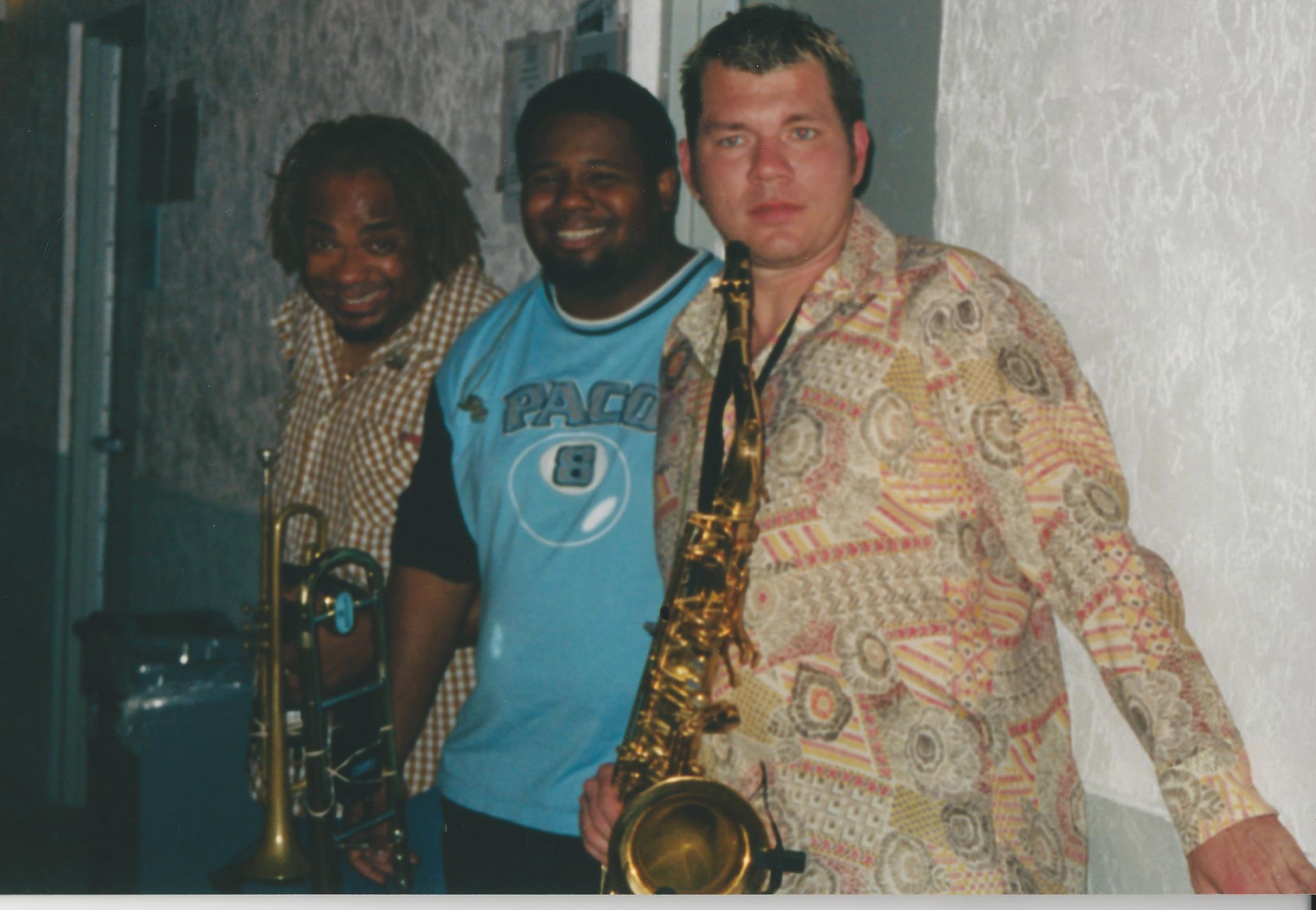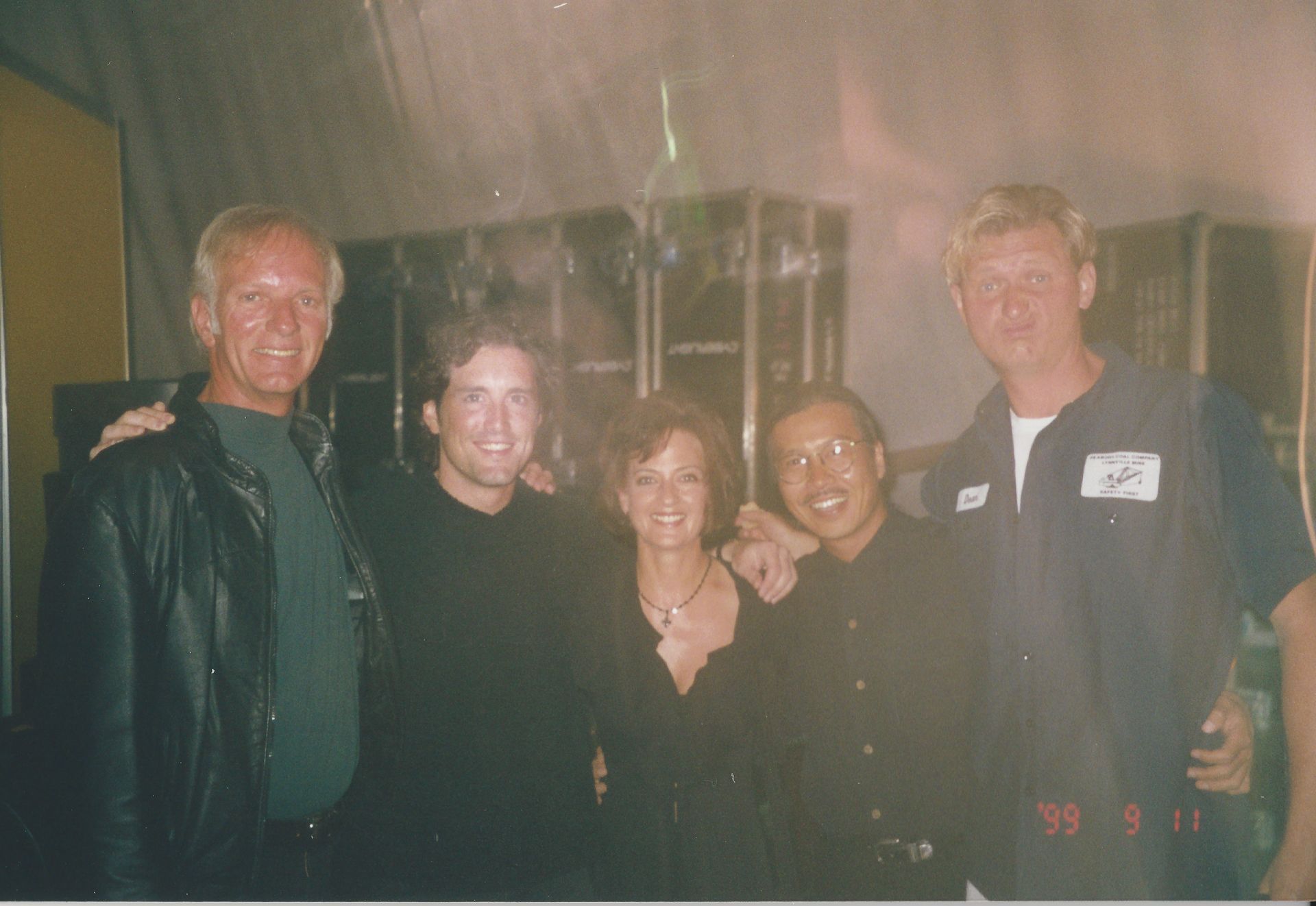 The Country Night Festival, a three night annual event in Gstaad, Switzerland (1999). All the artists (Lorrie Morgan, Mark Chesnutt, Ricky Skaggs and Allison Moorer) performed on all three nights. Here I am backstage with some of the "TBA" band. L to R, Kyle Tullis (bass guitar), Randy Flowers (guitar), me, Joshua Motohashi (steel guitar), and Howard Mayberry (drums - always the clown).