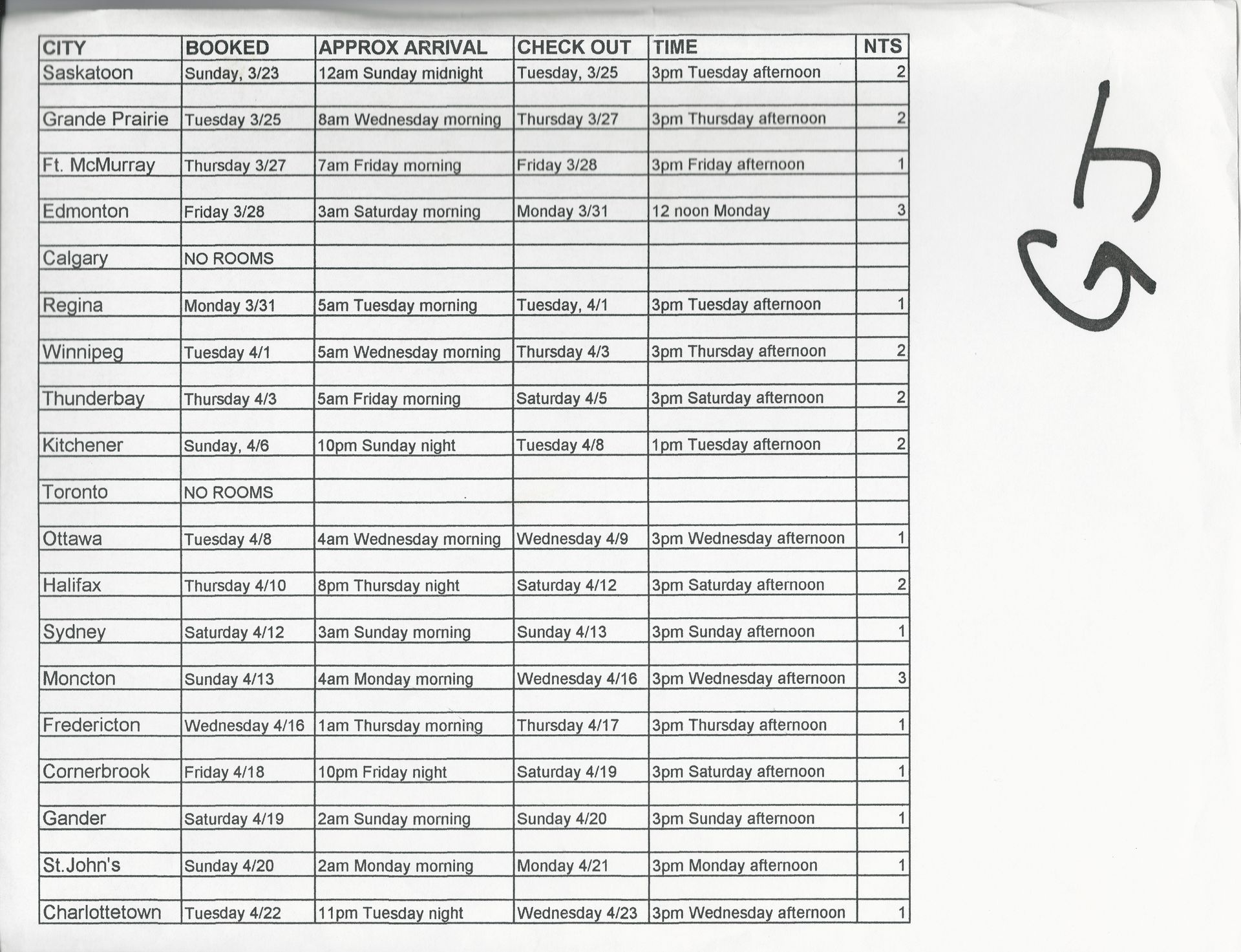While on tour, I took every opportunity to see the area. Whether it was Boonville, NY or New York City, I set out to see the sights. The stage crew decided to rent a car on a day off in Canada and I had a great time seeing the sights with them. Seth Jackson (middle) was our lighting director. When I went to work for Toby Keith, he was designing the light show for Toby. He has gone on to do many large tours.