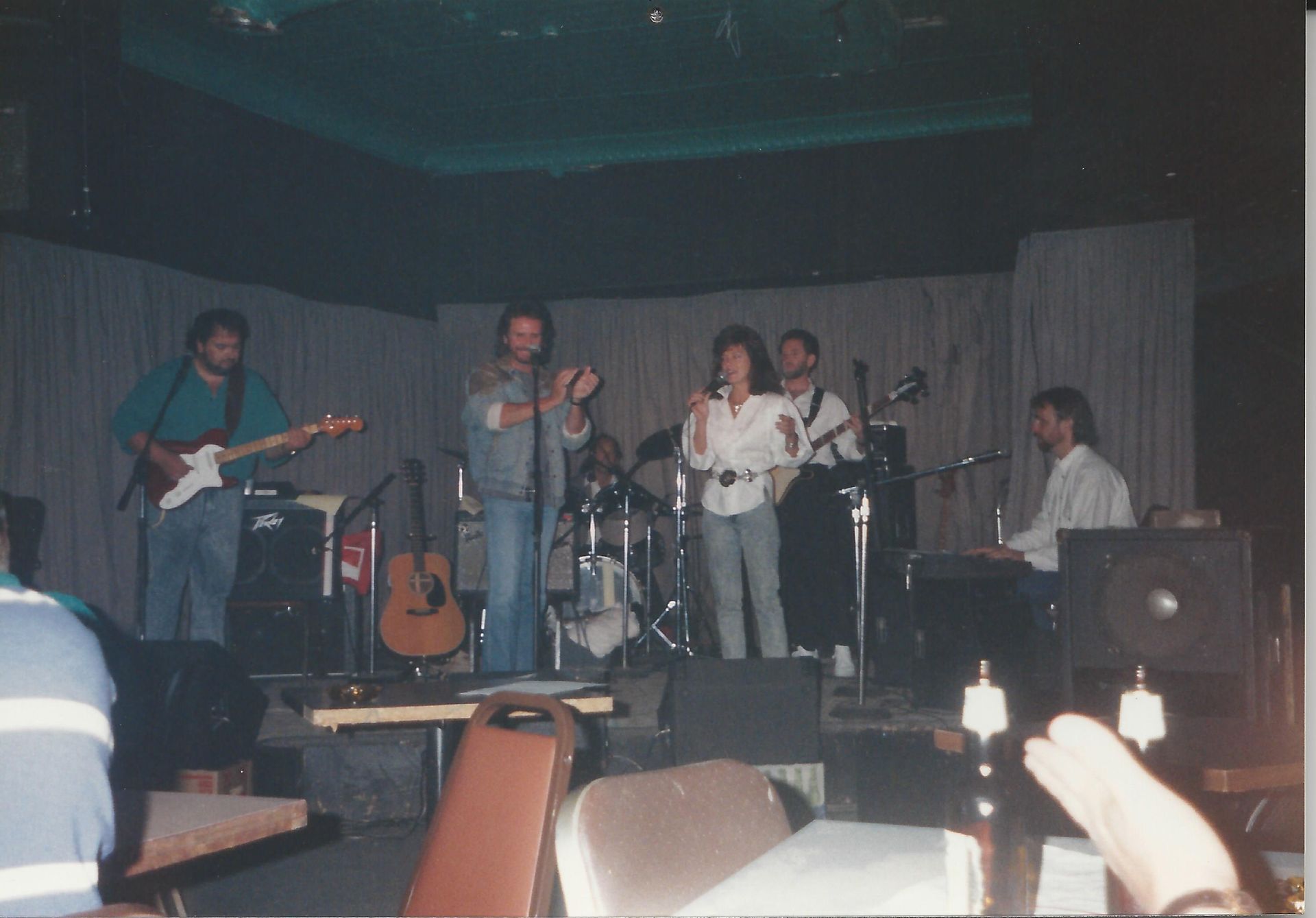 About a year and a half before we moved to Nashville, I took a job with at Top-40 band in Minneapolis called Southwind. Back then there were lots of live music venues and Southwind worked many supper clubs and large hotel lounges throughout the Minneapolis area. They rarely traveled and had a steady schedule. My friend Beth Marthaler would go to see them and knew they were considering adding a female vocalist. She invited me out to their show one night. I got up and sang a few songs with them and they hired me. It was a great opportunity for me to stay in town, save some money and prepare for the move to Nashville. There were a few things that would be different for me. They didn't play country music. I learned a whole new set list that was always changing as Top-40 bands were like that - always learning the latest chart toppers. I performed songs by Madonna, Cindy Lauper, Taylor Dayne, Gloria Estefan and every other girl singer on the pop charts. Also, all three guys in the band spoke Spanish. The keyboard player and drummer were from Mexico and the bass player from Chile. Rehearsals were in Spanish. I sat there thinking to myself, "music is the universal language, I know what's going on, but I haven't a clue as to what they are saying". If I have a regret, it's not learning Spanish then when I had such a great opportunity. Pictured from L to R: Enrique Ponticas (bass guitar), myself, and Juan Plascencia (keyboards),