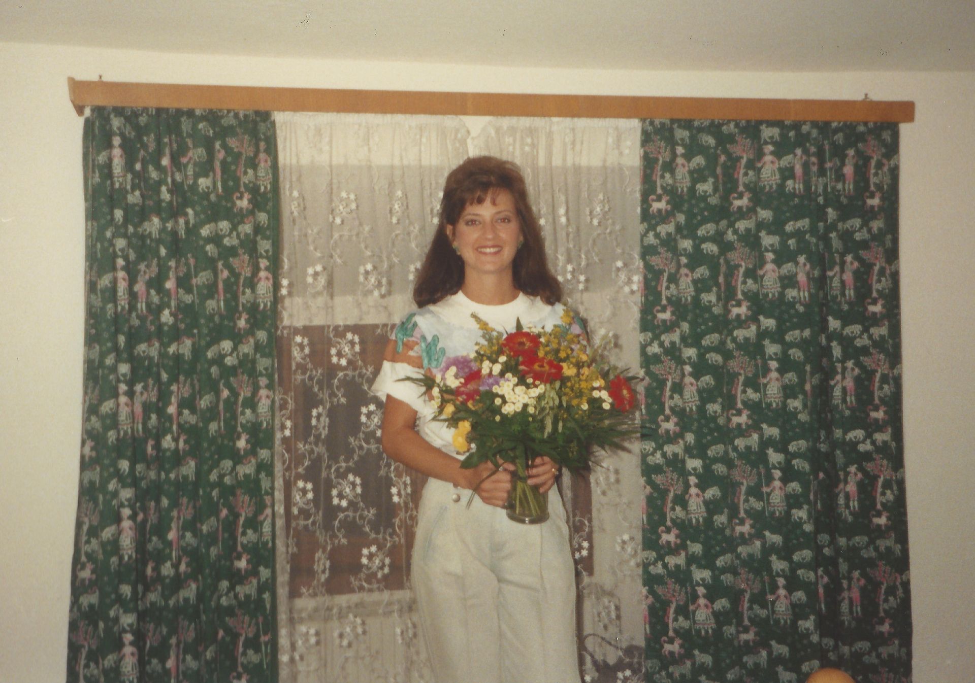 In 1991, I was part of a band called "Flight" that did a DOD (Department of Defense) tour. We performed at a military resort in Berchtesgaden, Germany. It just so happened that the day we arrived in Germany was my birthday. As we checked in, the military personnel that greeted us presented me with this glass stein full of flowers. While there, we would stay in what was once the home of Hitler's architect. This picture was taken in my room.