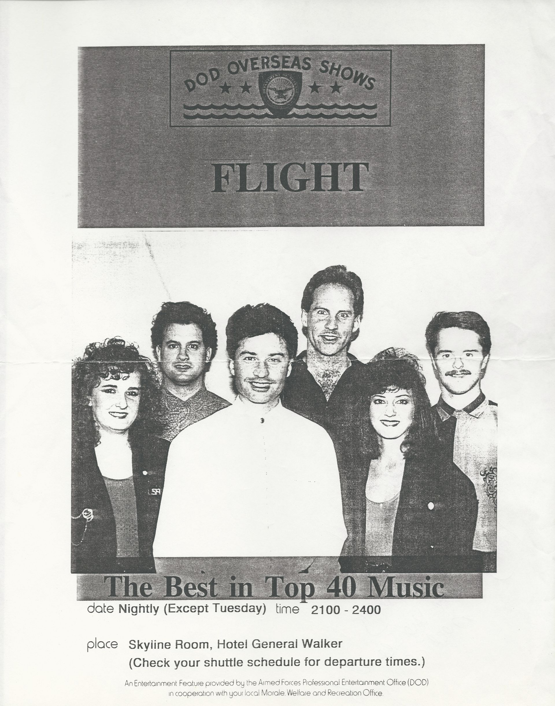 This is a postcard I saved from the venue where we performed during the DOD tour with "Flight" in1991. This hotel in Berchtesgaden, Germany was property the US seized during the war and was being used as a military resort. On this particular tour, we stayed in the same place and our audience changed as service men and women were given 3-day passes to visit this resort. We performed in the building pictured on the far left of the photo. There was this wild tunnel system that connected the buildings and our clothing changes involved going down a narrow flight of stairs and through one of the tunnels. This made the three minutes we had to change pretty frantic. I understand this resort has been leveled and no longer exists.
