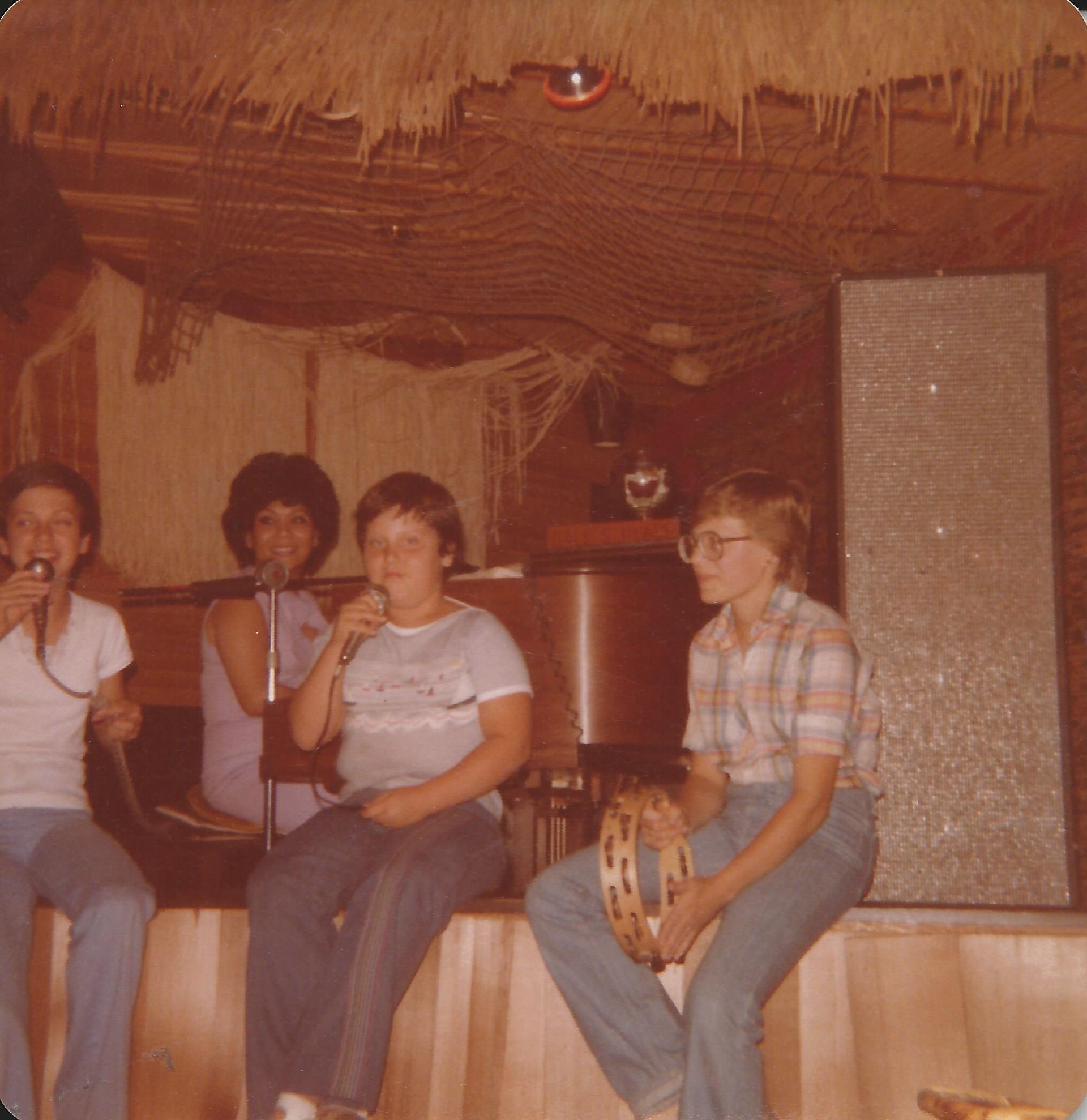 There was a supper club called Portside along the Mississippi River near Rice, MN. When I was 12, I performed there on Sunday afternoons during the winter months with Dick Krekelberg. The lounge was called the Kon Tiki Room. The following summer the owner brought in Gale Stoddard to perform. She played piano and sang popular songs. She lived in Buena Park, CA. I couldn't imagine she came thar far to work a club engagement. I don't know how long she performed there, but after meeting that one time, we became lifelong friends. I was enamored with her and anxious to know anyone that was making their living in the music business. Her story was amazing of growing up in the Philippines and marrying her husband at a young age then moving to CA. She was a brilliant pianist. That Sunday afternoon when we stopped in, there weren't a lot of people there. The owner had me sing with her and invited my sister Peggy and cousin Bonnie to join in. Ironically, Bonnie (on the right) who was also very artistically inclined and would go on to pursue graphic art. Bonnie has designed all of my CD covers. From L to R: Me. Gale Stoddard, my sister Peggy, and cousin Bonnie Trobec.