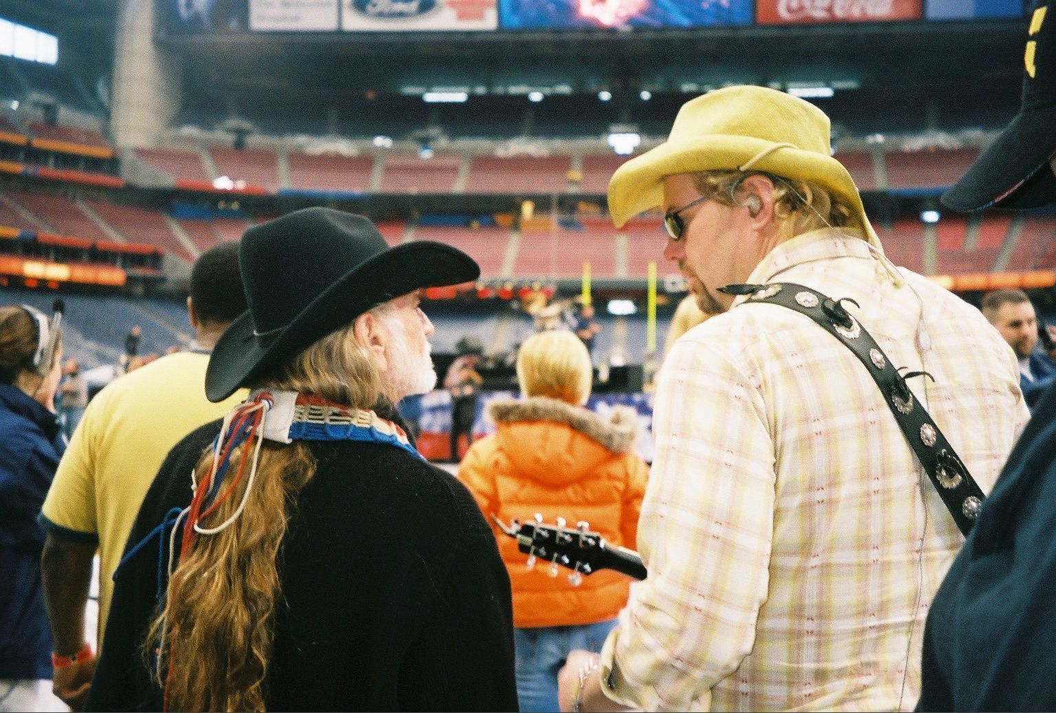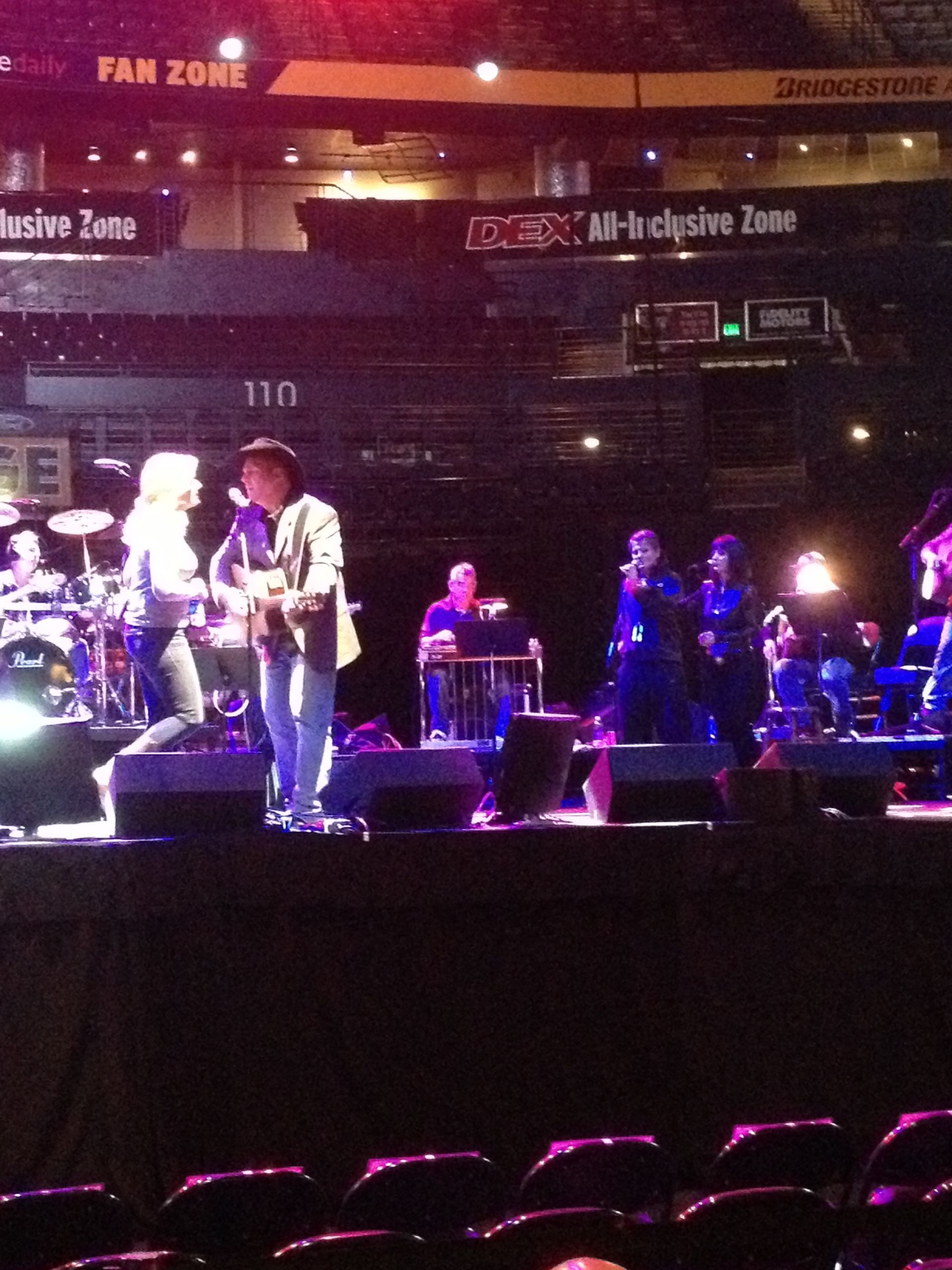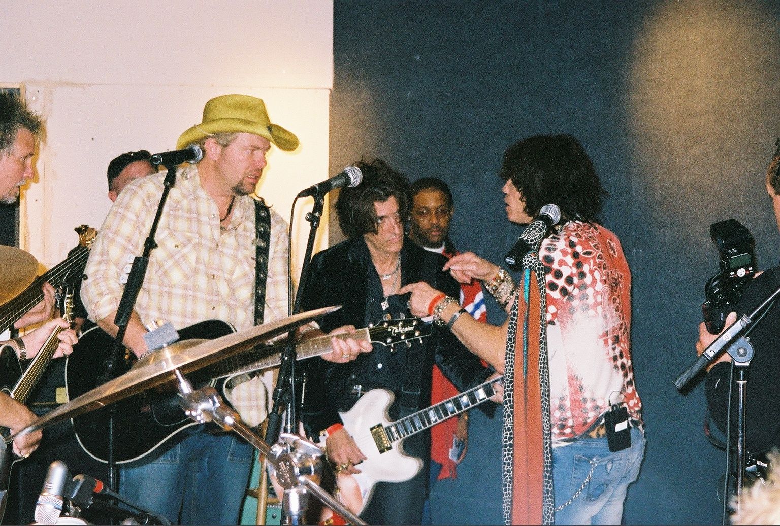 In 2004 while touring with Toby Keith we did the pre-game show for Superbowl XXXVIII. Aerosmith was also part of the pre-game show. The night before we filmed a CMT Crossroads special with several guests including Steven Tyler and Joe Perry. During the rehearsal for the CMT special at a rehearsal hall in Houston, I was able to catch this picture with Steven Tyler. What I love about Steven Tyler is that he is like my hero Dolly Parton. He’s always stage ready! They are always true to their “brand”. They don’t try to hide under dark glasses and a ball cap.