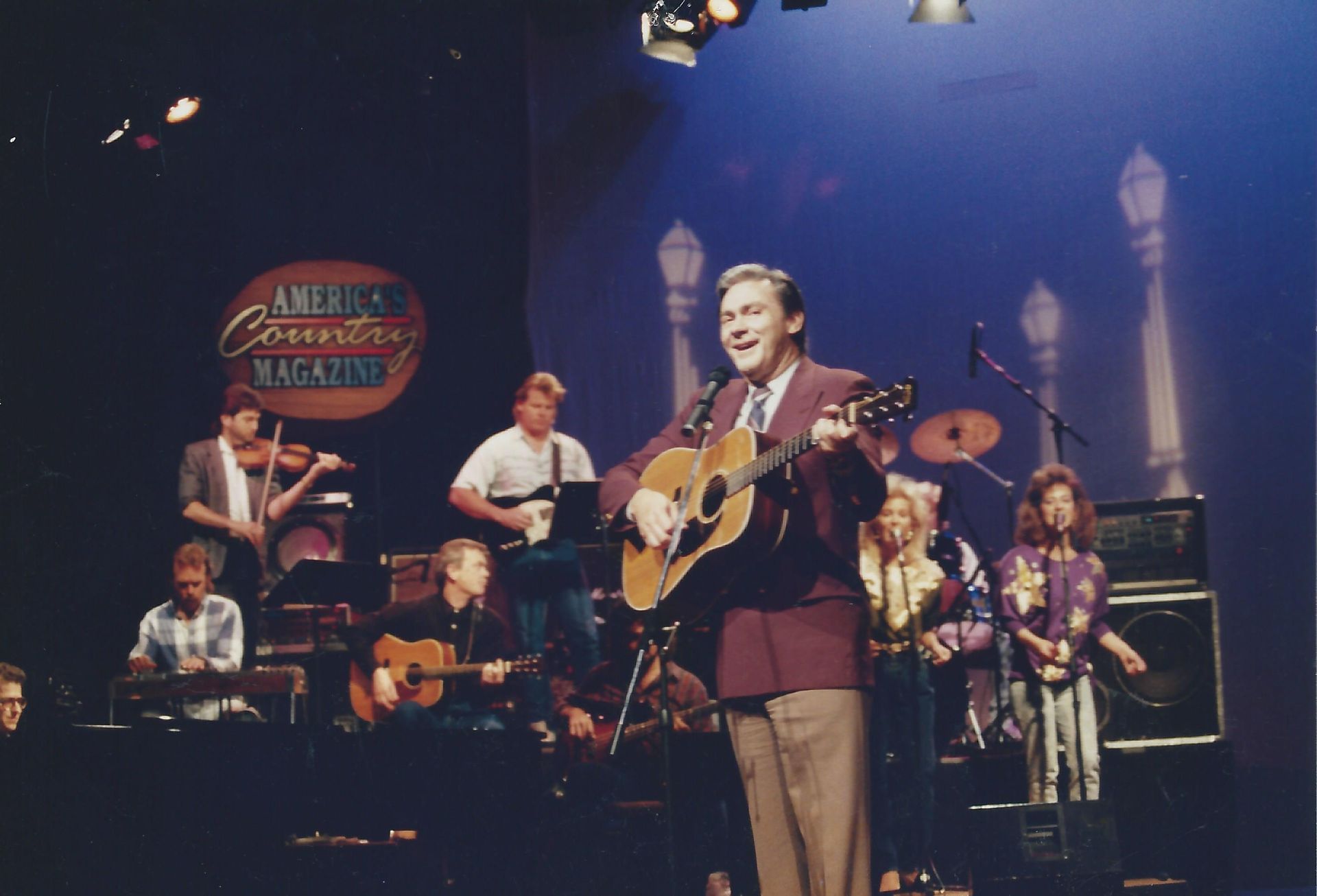 During the filming of America's Country Magazine in 1990, I enjoyed being part of the house band and singing background vocals for several great artists. Dottie West was one of the grand ladies of the Opry and always dressed like a superstar. She had had a successful solo career but then also several duet hits with Kenny Rogers. Also pictured here, on bass guitar, Jason Hutcheson. Dottie was killed in a single car crash on her way to the Opry about a year later.
