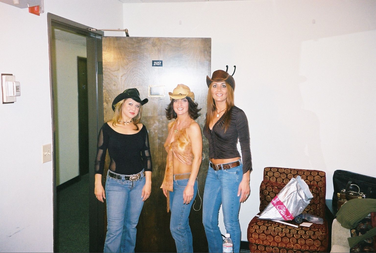 In 2003 I toured with Toby Keith for his Shock’n Y’all Tour. We were fortunate to perform for the Thanksgiving half-time show in Dallas. Here I am in one of the stadium suites with Toby and the other T-Backs Mica Roberts (middle) and Laurin Simmons.