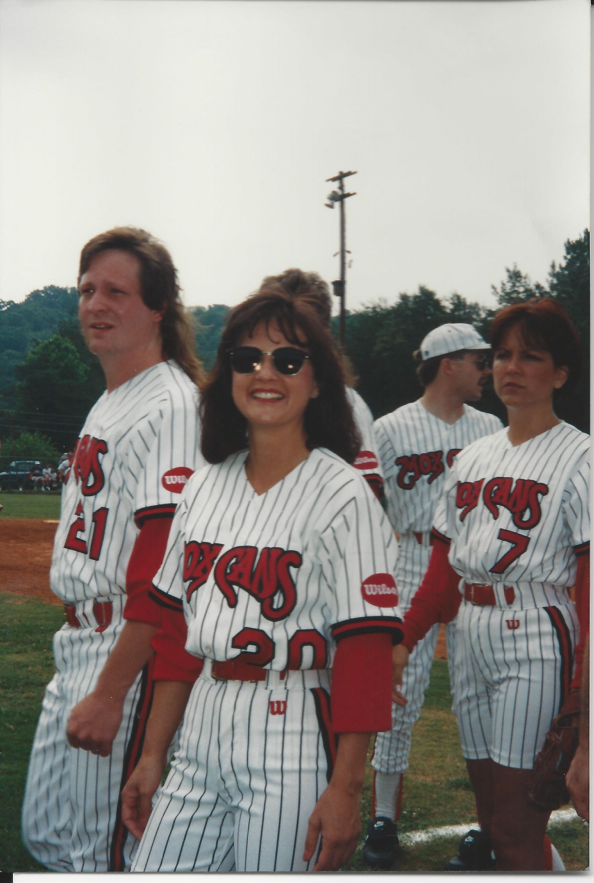 When I started with Lorrie Morgan in 1993, her bandleader at the time, Dave Fowler, loved sports. Something Lorrie would do in the afternoons before a show, was challenge a local radio station to a softball game, the station vs. her team, The Moxcans (as in water moccasin) Why? I don't know. I was never good at sports, though my dad sure tried to get me and my sisters to play softball. Much to his dismay, we were pretty lousy. Much to my dismay, here I was on my first major artist gig, playing softball?? Dave had gone all out that season and had gotten a rep at Wilson to have custom uniforms made for us. I really only recall us playing one game after we got the uniforms. I don't remember whether or not we won the game, but we looked good!