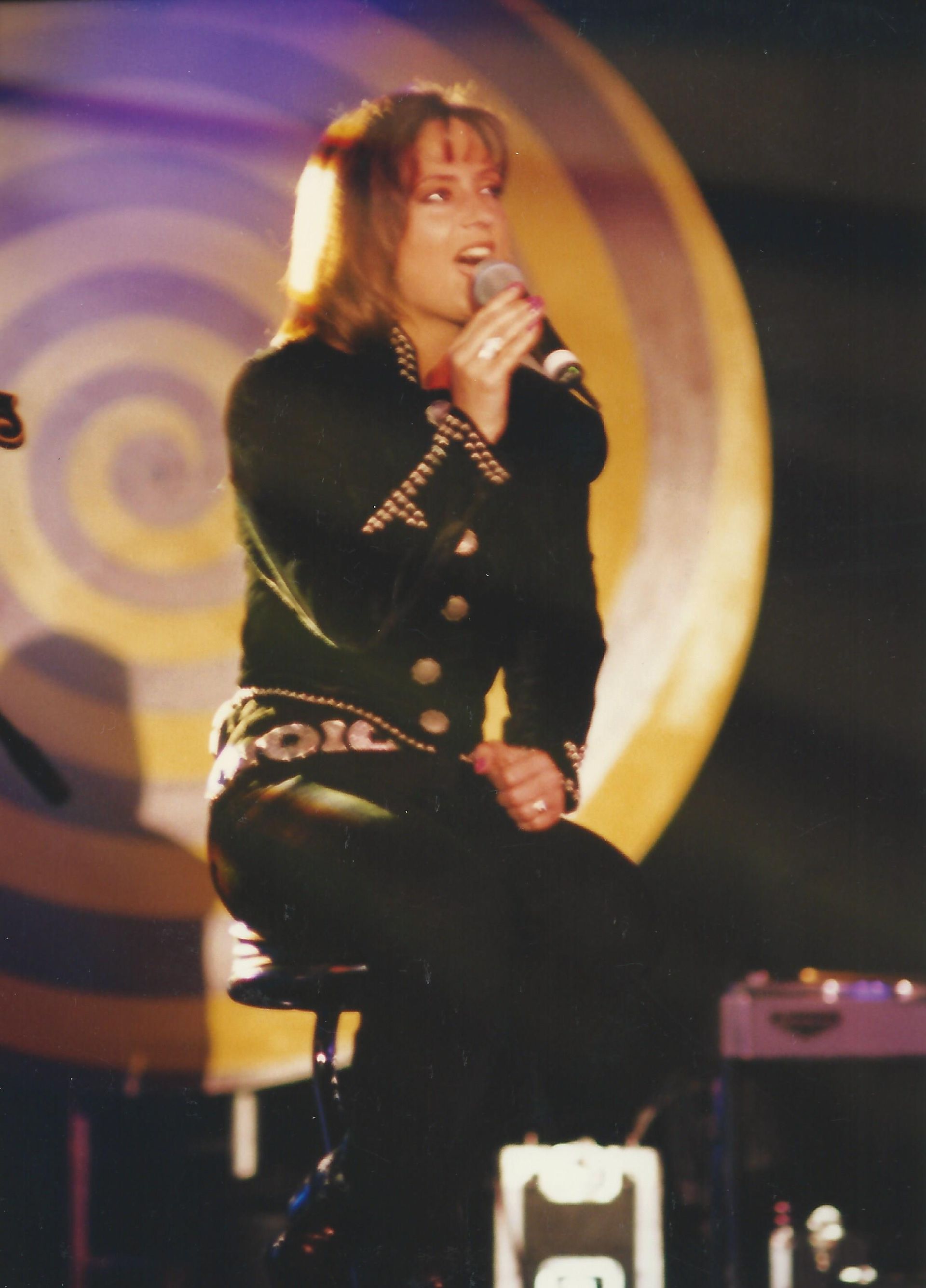In 2001 and 2002 I was writing with Michael Salacuse. He was producing some really fresh sounding music. It sort of struck me as an evolution of what Shania Twain had done. Michael called it EuroTwang. It incorporated country lyrics, melodies and instrumentation with dance beats and effects. I really enjoyed writing and recording the music. At the time, I didn't have a manager so I shopped the project myself to record labels. I was thrilled that I was actually able to get sit-down meetings with the heads of several labels. The music inspired me to design stage costumes that I felt matched the energy of the music. I organized a showcase at the Exit Inn in Nashville. This was a huge undertaking and I was glad to be able to fill the room. Mark Wearsch took this picture that night. Alas, a record deal was not in the cards. I was disappointed for myself and Michael too. Michael continues to produce EuroTwang and has had some success overseas. It still sounds as fresh to me now as it did then. With or without me, the music is brilliant. You never know what will come of things. My friend Mica Roberts came to the showcase at Exit Inn. Not long after that, she reached out to me about doing the Toby Keith gig. I feel her seeing me in this setting definitely put me in mind for that.