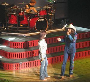 The band Tesla with lead singer, Jeff Keith ,performed at the Ryman Auditorium in Nashville. For the band's encore, they did selections from Jeff's new country project which included his self-penned duet, "Oklahoma Bound". I recorded the song with Jeff for his "Jeff Keith and Country Music Friends" CD and performed the song with him live that night.