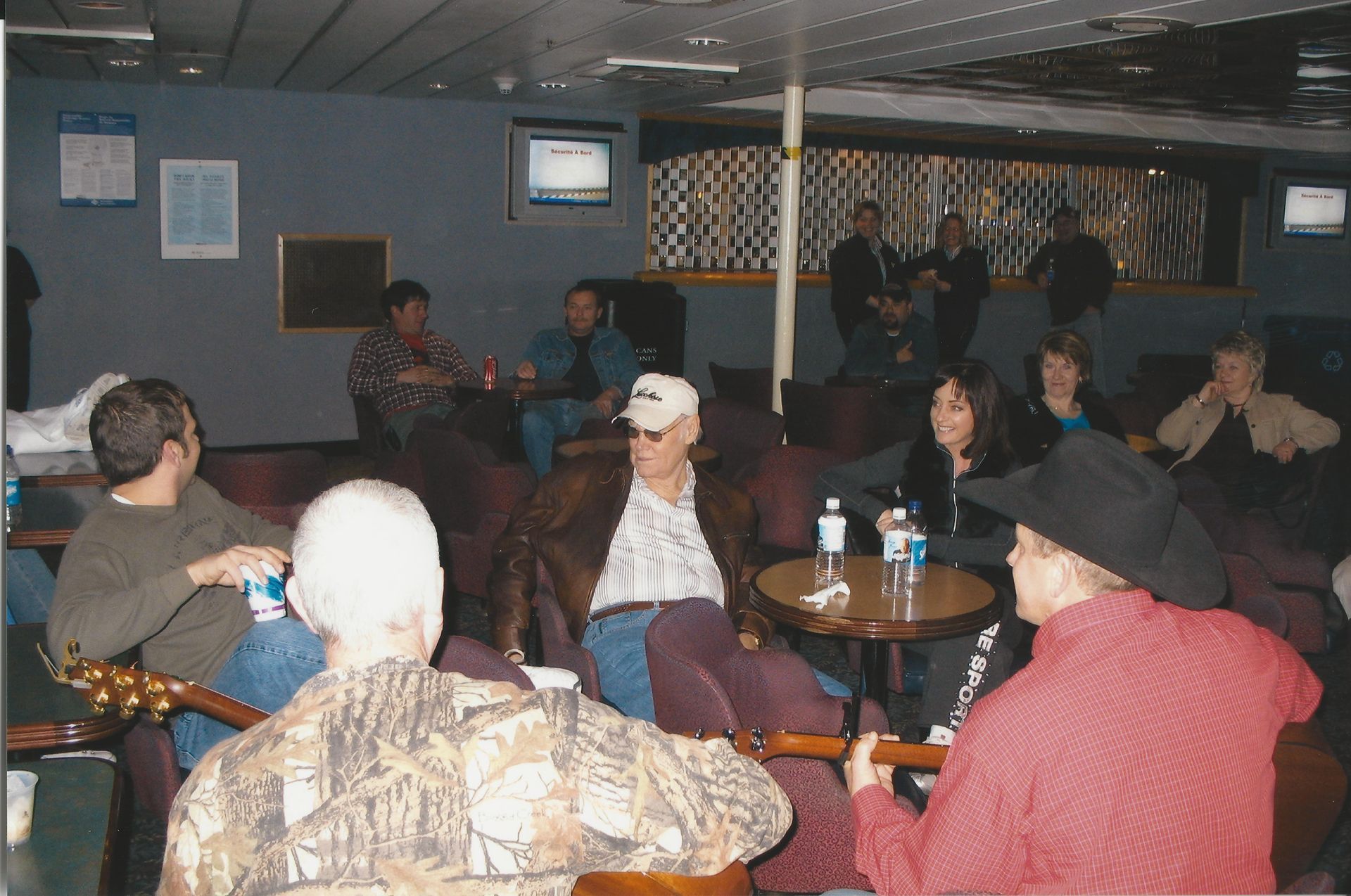 In the early days of country music, artists always had names for their bands, Mel Tillis had the Statesiders, Conway Twitty had the Twitty Birds (lucky for them), Porter Wagoner had the Wagonmasters and so on. Lorrie having such deep country music roots, always felt like her band needed a name. When I started with Lorrie Morgan in 1993, her band was called "The Slam Band". Apparently, they frequented Denny's restaurants where the menu items included the word "Slam" and so it stuck. When Lorrie changed bands in 1996, she wanted a new name. Nobody had any great ideas, so TBA became the new band name. Pictured here after a show at the Chinook Winds Casino in Lincoln City, OR are a few members of one incarnation of TBA. When we performed at Chinook Winds it was usually for 2 or 3 nights. Every now and then, we would perform in the same place for more than one night. This particular night, they kept the restaurant bar open for us so we could enjoy a few drinks and relax. From L to R: Randy Flowers (guitar), myself, Mark Oliverius (keyboards) and Marshall Richardson (drums).