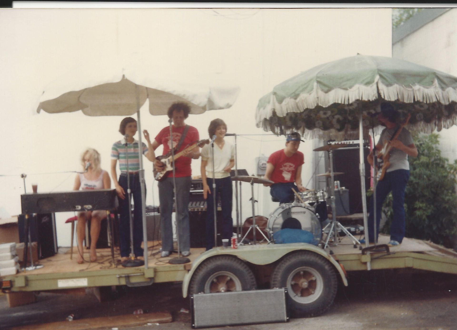 You've heard it said that one must "pay their dues". Well, for the most part, I never thought at any point in my career that I was "paying my dues". I was always focused on the show/gig at hand and looking to the next one. However, there are a few gigs that stand out as ones where I was on stage asking myself, "What in the he%# am I doing here?". I didn't take many pictures back in the days when I was working with Sherwin Linton and when I came across this one, I had to share it. Most of the time we had great working conditions. This was at the Balsam Lake Freedom Festival in WI. Sherwin would always advance the shows letting the buyer know what we needed. This particular buyer had a different vision. Imagine our surprise when we arrived and saw our stage. Things only got worse as the day wore on. It was one of the hottest and most humid days I can remember. We all opted to not wear our stage clothes and just wear street clothes for the show. We started performing just as the sun was setting. Just when we started to feel a slight reprieve from the heat, the yard light on the building behind us came on and nobody seemed to know how to turn it off. I swear every bug in the state was at our show that night. You could hardly sing without swallowing a bug. Sherwin has always been a champ at making the best of a bad situation. I remember him making up a song on the spot and rhyming freedom festival with pest control. As miserable as it was, I couldn't resist laughing at that. Oh the memories.....Pictured L to R: Sandy on keyboards, my sister Pam, Sherwin, myself, Bill Schott, and Lee Scherer.