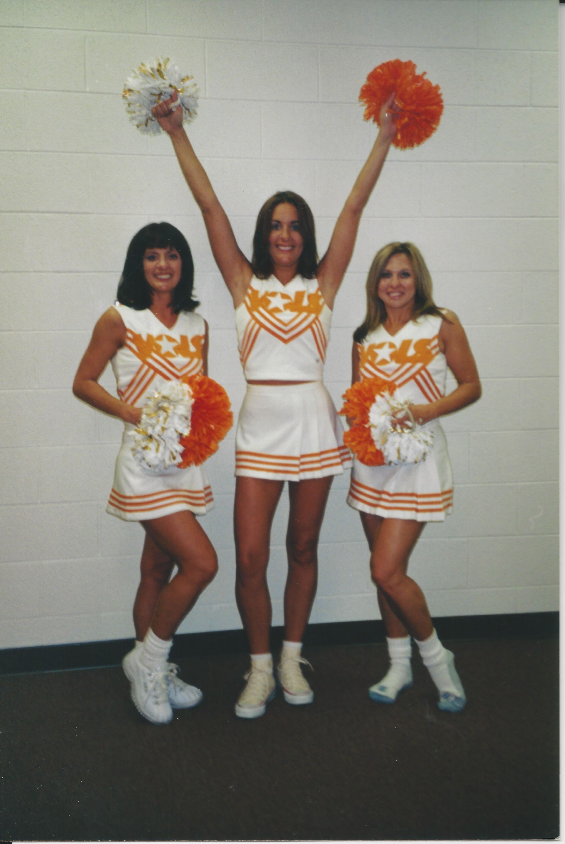 While touring with Toby Keith, the T-Backs would do several clothing changes throughout the show. For his hit song “How Do You Like Me Now” we came on stage dressed as cheerleaders. Laurin Simmons also a choreographer designed our dance moves for each song. One of the tour stops was at the Thompson-Boling arena on the campus of the University of Tennessee. When Toby would introduce us, we would sing a few lines of a song as the rhythm section vamped behind us. What else would you sing in this venue, but Rocky Top? It was Toby’s assistant tour manager; Kirby Middleton who found a way to get us some Vols cheerleader outfits to wear for that segment of the show. The crowed absolutely erupted when we came out in these uniforms for that song.