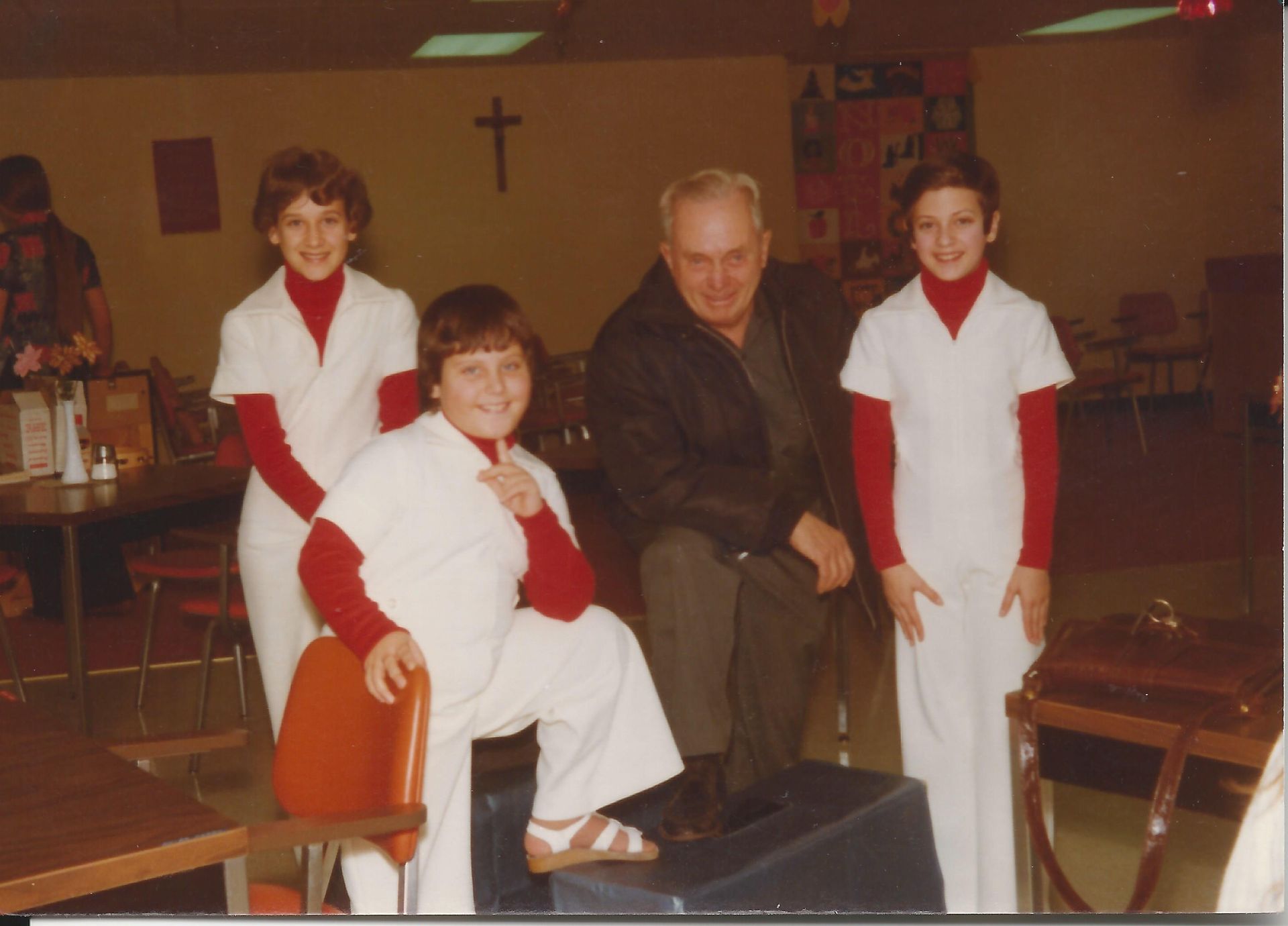 My first public performance was at the age of 6 for a Fall Festival concert our church put on each year. From then on, I was hooked. I sang any and everywhere I could. Soon my sisters Pam and Peggy joined and we had our own little family band. Our Grandpa, Tony Trobec loved music and would always ask us to sing with our aunt Betty to accompany us on the piano. He bought us our first "PA system", and was quite often our crew as the speakers were too heavy for us to lift. Here we had just finished performing for residents at a local nursing home. From L to R: My sister Pam, Grandpa, myself and my sister Peggy with her leg up on top of one of the speakers. I still have this sounds system - not sure if it even works, but I can't bear to part with it.